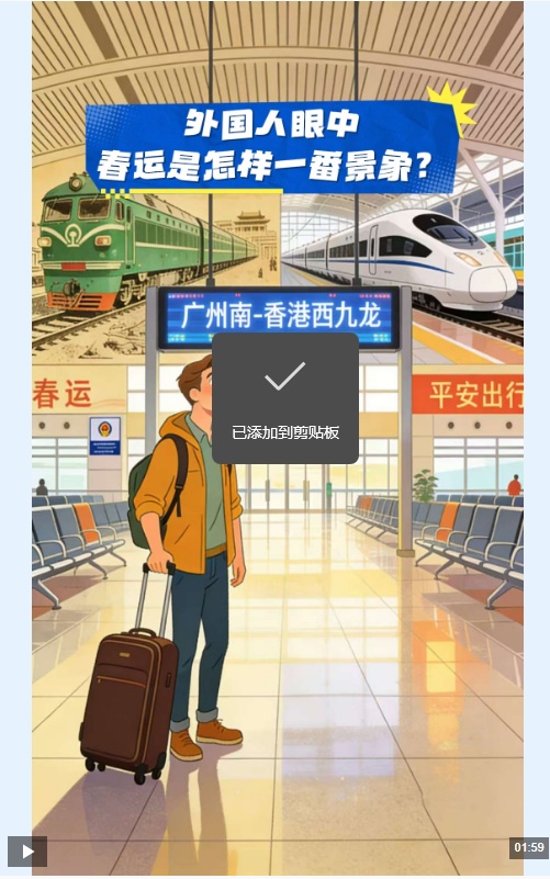 从外国友人的目光看去,春运已不仅是一场交通现象,从绿皮车的记忆到如今风驰电掣的“中国速度”,这是中国社会发展的生动特写。年复一年,这场以“流动”为名的迁徙,也因高铁这张“国家名片”,成为世界观察当代中国的一扇真实而开放的窗口。