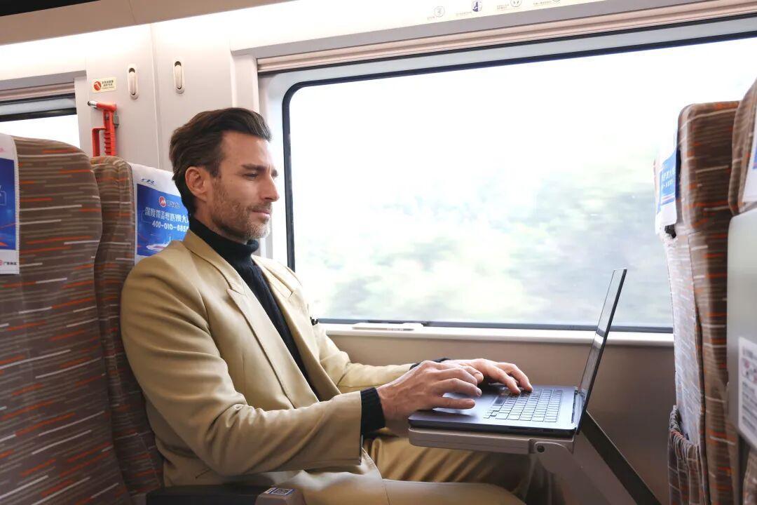 阿根廷的Raul在高铁上办公(中国铁路广州局集团有限公司融媒体中心供图)