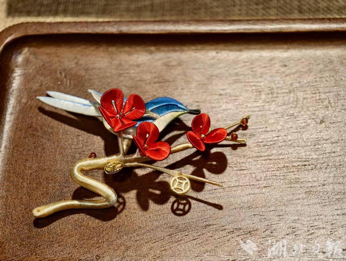 喜上“梅”梢款式的胸针(湖北日报全媒记者 汪子轶 摄)