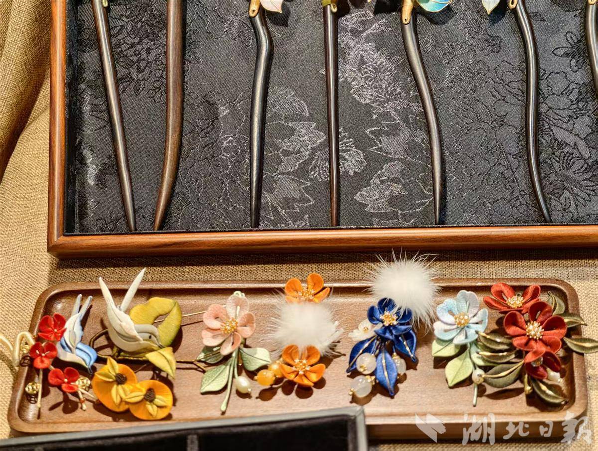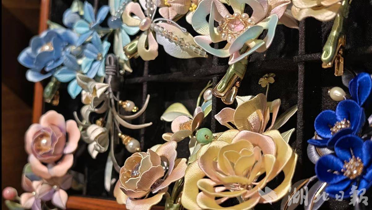 一位从西安中转来汉的大学生小朱,为长沙家中的女性长辈精心挑选了红梅胸针与花卉发卡,“这是我自己喜欢的传统文化,也算一份特别的新年货。”