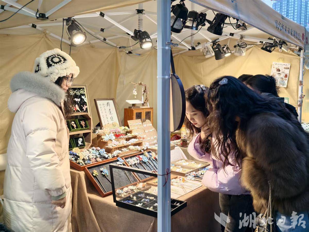 年关将近,武汉黎黄陂路附近的创意市集逐渐热闹起来。几步开外就是网红打卡地巴公房子,人流裹挟着过年前的热闹劲儿。2月7日、2月8日,湖北日报全媒记者来到市集探访。