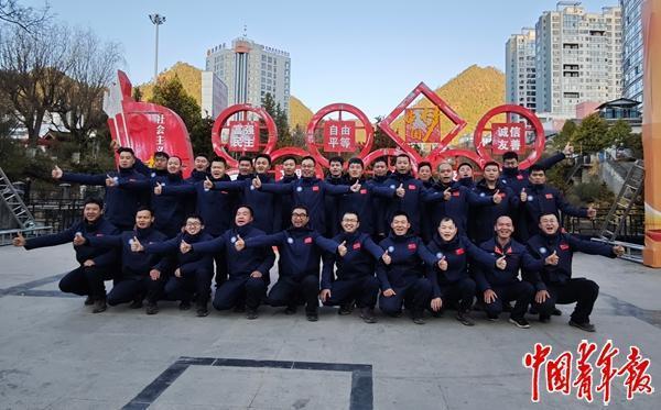 1月29日,兰坪项目组成员在兰坪县民族文化广场合影留念。中青报·中青网记者 朱彩云/摄