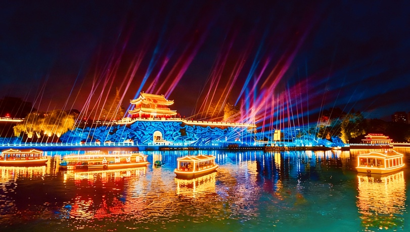 在桨声灯影中,看两岸灯火倒映成趣,领略“舟行碧波上,人在画中游”般诗意的荆风楚韵。