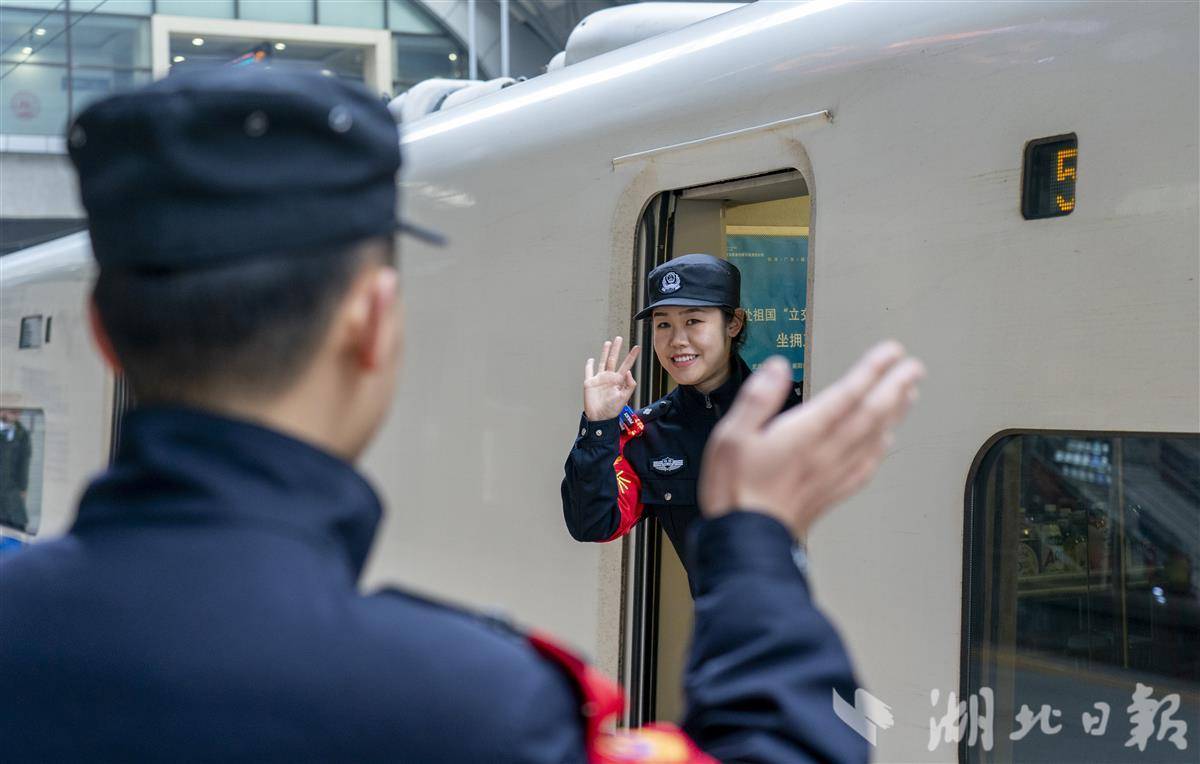 “穿上这身警服,就意味着责任与担当,我们多一分坚守,旅客就多一分安全。”李以诺说。(湖北日报全媒记者 魏铼 李溪 通讯员 熊振迪 周婷摄)