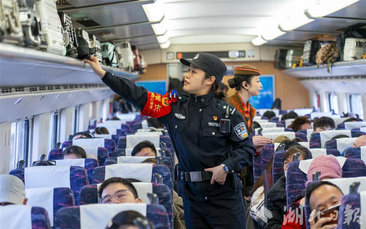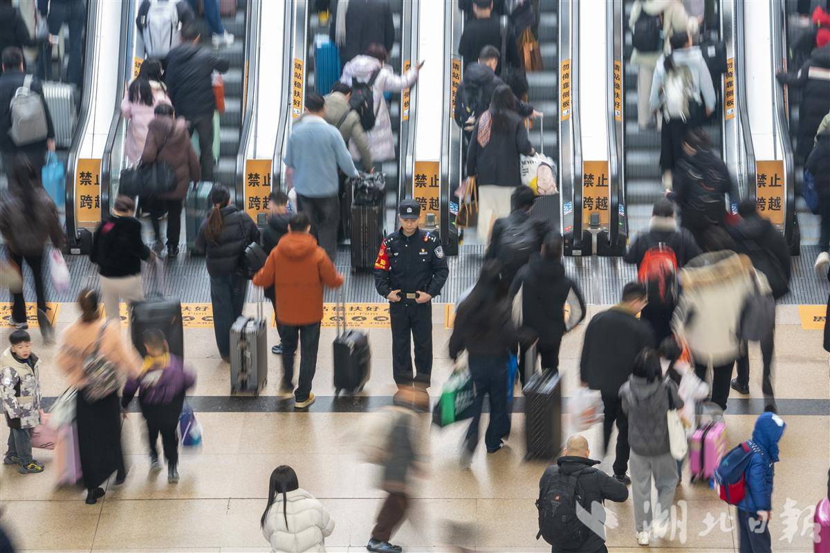 2月11日是农历南方小年,武汉铁路公安局武汉公安处民警夫妻李以诺、李赫男依旧坚守岗位,这是他们结婚以来共同度过的第三个春运。