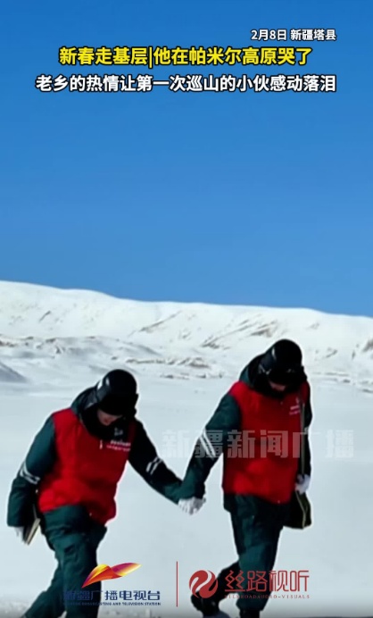 新疆广播电视台/丝路视听讯(记者:唐学乾)2月8日,国网塔什库尔干县供电公司员工向政宇首次在帕米尔高原开展巡山工作。因错过饭点,他被当地居民邀请至家中,端上热奶茶与馕热情招待。这份淳朴温暖的情谊,让他瞬间破防、感动落泪。