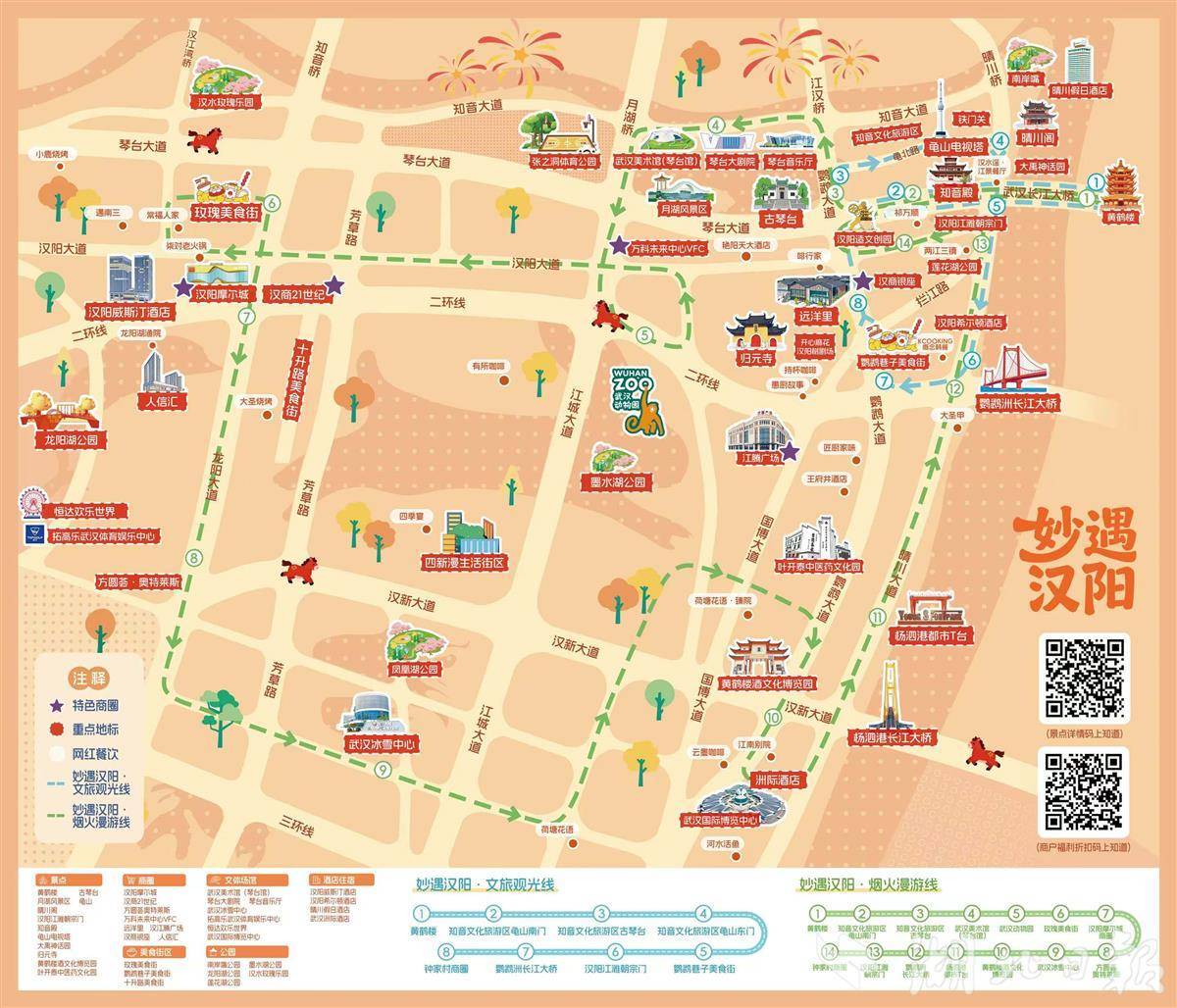 本次巴士专线以“快进漫游、串联文脉、贯通烟火”为核心,精心打造文旅观光、烟火漫游两条特色线路,均从黄鹤楼始发,一条串联汉阳核心文化地标,一条贯通汉阳热门商圈、特色街巷、美食街区。