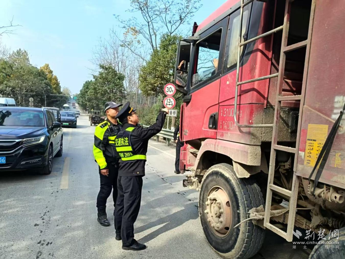 “阳逻港那边货车通行密集,安全风险隐患突出,要集中优先治理。”面对港口货运通道管控空白,大队组织优势警力,联合城管部门组建专项整治工作组,在货运通道增设2处测速卡口和1处治超点,推出“源头核查+夜间巡查+科技抓拍”管控模式,严查超限超载、不按规定车道行驶、闯红灯等违法行为,同时对阳逻港门前平江大道进行提档升级,增设护栏、施划标线、完善交安设施,对违停、超限运输集装箱等加大执法监管力度。
