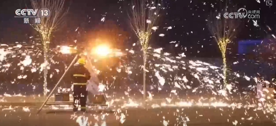 当晚,街区内还举办了“涿鹿绕花”展演。“涿鹿绕花”是河北省级非物质文化遗产项目。现场万千火星如飞瀑簌簌坠落,金花漫天绽放,与古色古香的鼓楼交相辉映。此外,古装沉浸式巡游和潮玩快闪也在这里陆续上演,让不同年龄段的游客都能找到新春乐趣。