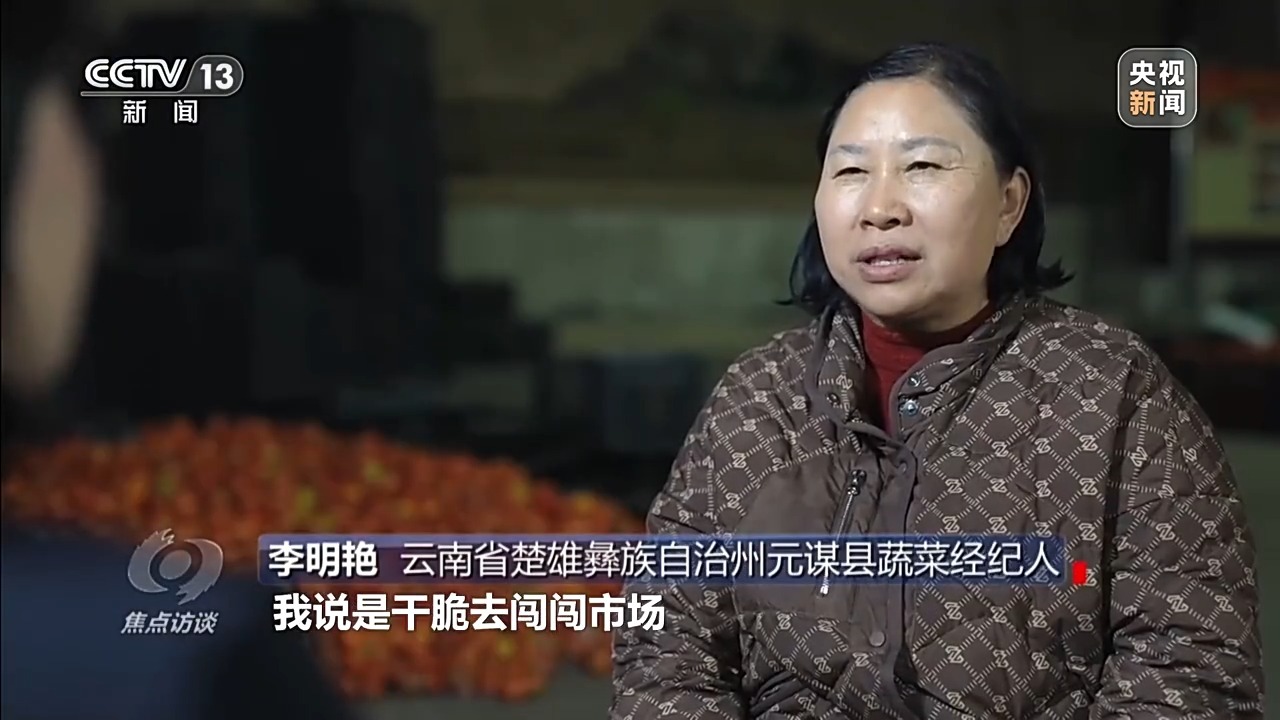 云南省楚雄彝族自治州元谋县蔬菜经纪人 李明艳:因为我们祖祖辈辈都是农民,看着爸爸妈妈把菜种出来了,卖又卖不到好价钱,我说干脆去闯闯市场。