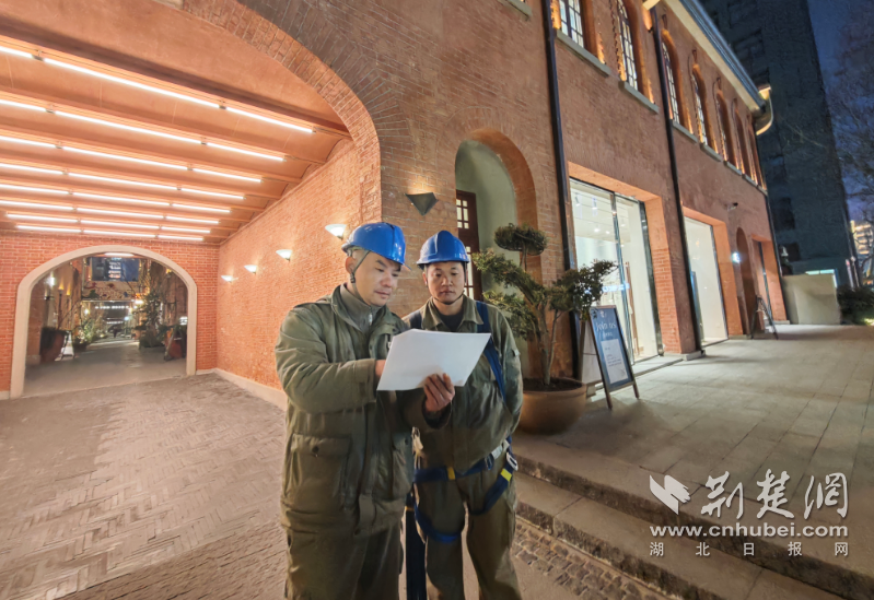 “抢在春节前完成杆线入地,给延庆里街区面貌加分,让市民游客在新春期间能看到更整洁、更雅致的风貌景致。”国网武汉供电公司延庆里电力迁改工程项目经理孙涛告诉记者,为了让延庆里在春节期间以更优面貌迎接市民游客,供电部门特意将迁改进度提前,全力抢抓施工黄金期。一周前,工程正式启动,施工团队高效推进,前期已完成电线地下敷设、变压器移除等关键工序,新建的供电线路也于2月10日白天送电成功,确保周边居民节日用电不受任何影响。当晚,迁改工程进入最后的攻坚阶段——老旧杆线和设备拆除。