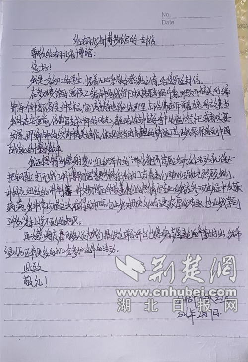 《给湖北省博物馆的一封信》。通讯员 供图