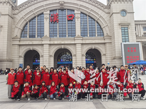 孩子们在汉口站前合影留念。通讯员 供图