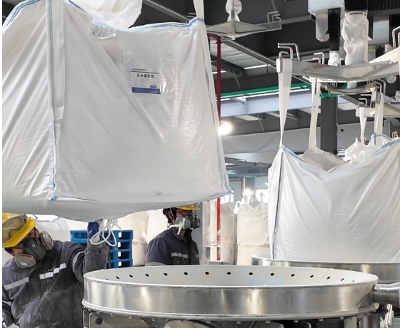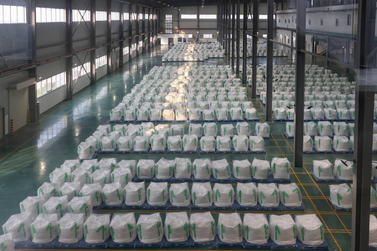 码放整齐的磷酸铁锂成品。 (湖北日报全媒记者 刘路 实习生 秦韵 摄)