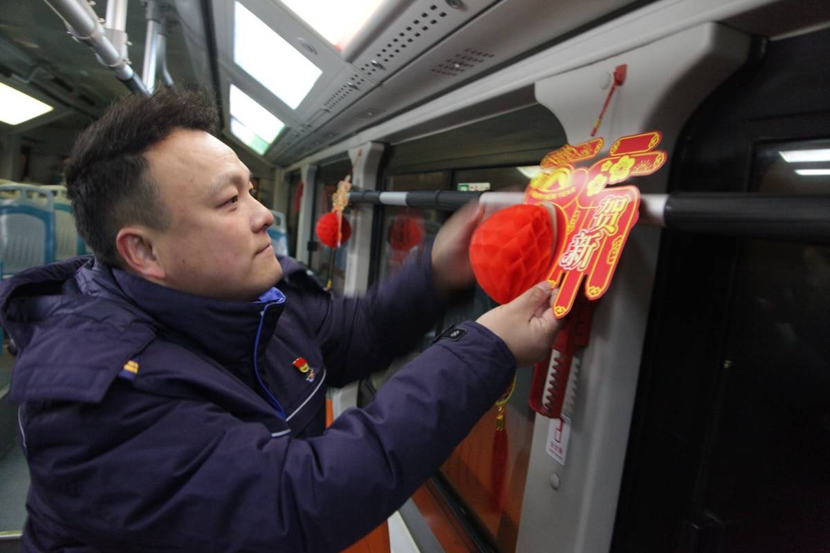 湖北日报讯(通讯员涂举学、李宏炜、曾海超)2月11日(南方小年)凌晨4时25分,天未破晓,武汉公交513路驾驶员胡晓已开私家车抵达武汉火车站公交场站。他比往常提前半小时到岗,细致完成出车前安全检查与岗位一体机确认,又贴心贴上窗花、挂起小灯笼,把车厢装点得年味十足。