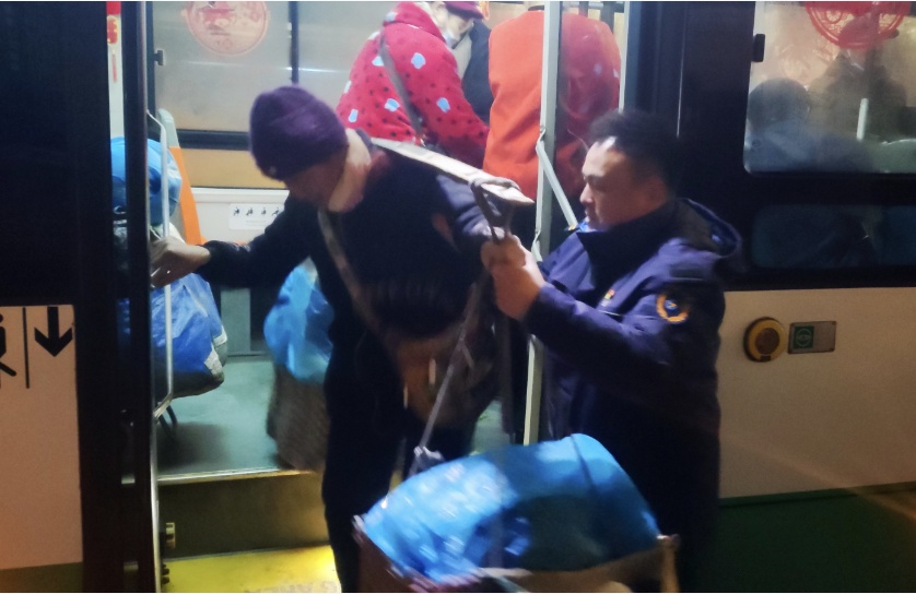 车辆抵达该站点后,随即恢复正常线路运营。车行至青王路滨湖村站时,又有10余名菜农候车,他同样主动上前帮忙搬运菜筐,细心照料每位乘客。