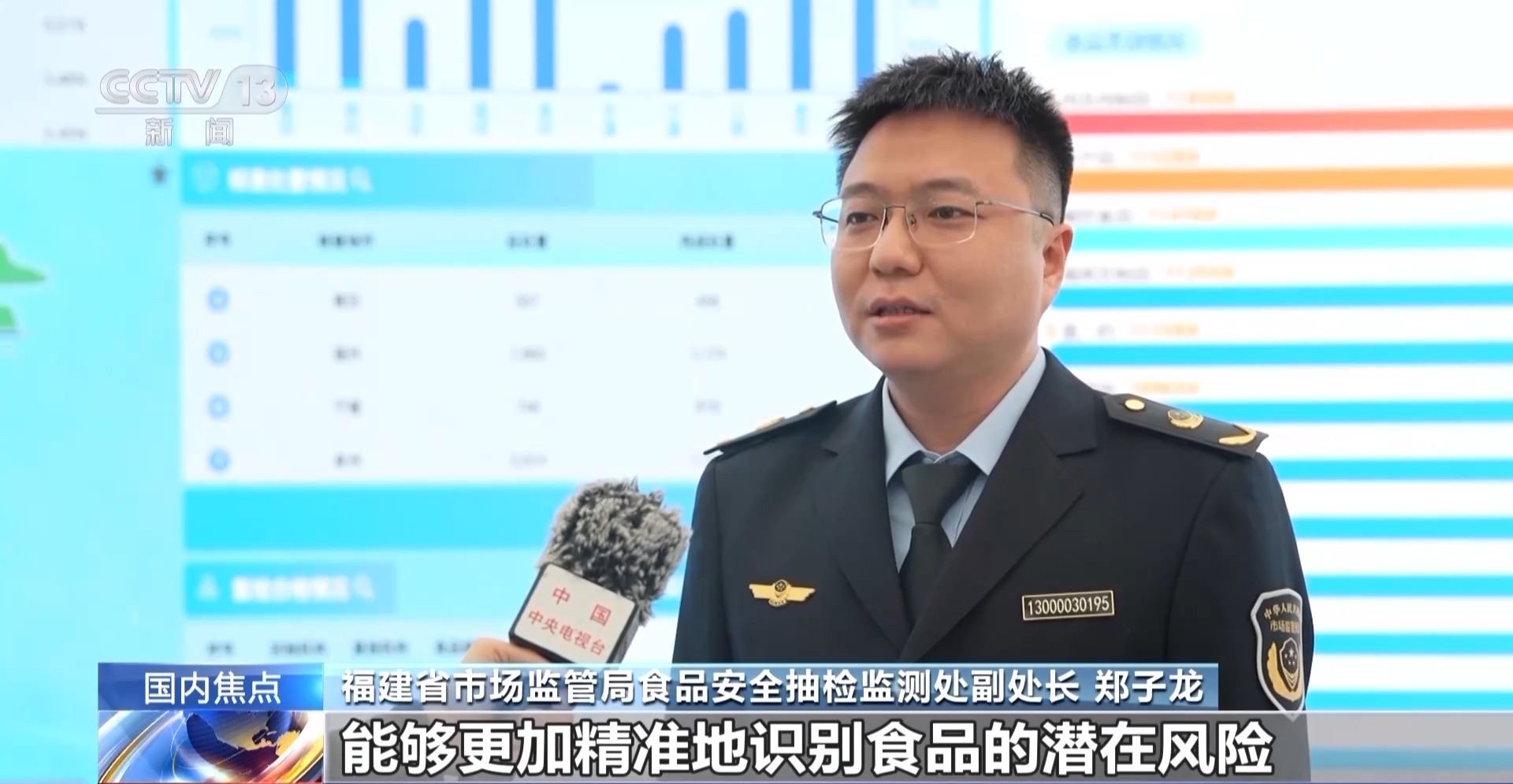 福建省市场监管局食品安全抽检监测处副处长 郑子龙:我们持续深化数字赋能,通过综合分析研判,能够更加精准地识别食品的潜在风险,发现问题以及症结,进一步凝聚起从农田到餐桌全链条监管合力。