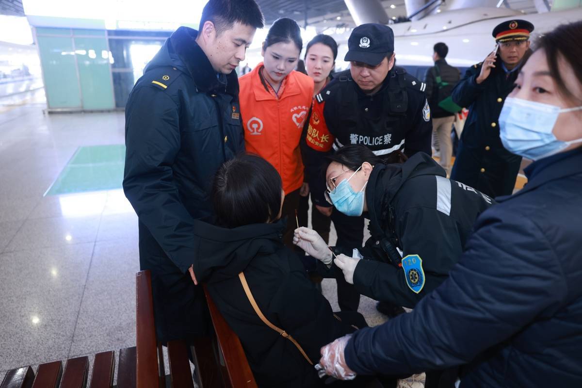 铁路民警、车站工作人员、武汉客运段志愿者和120急救人员一路将刘女士护送出站。