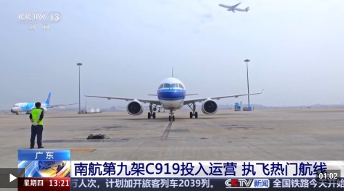 2月11日,中国南方航空最新接收的第九架国产大飞机C919正式投入运营,首航航班执飞广州往返西安航线。