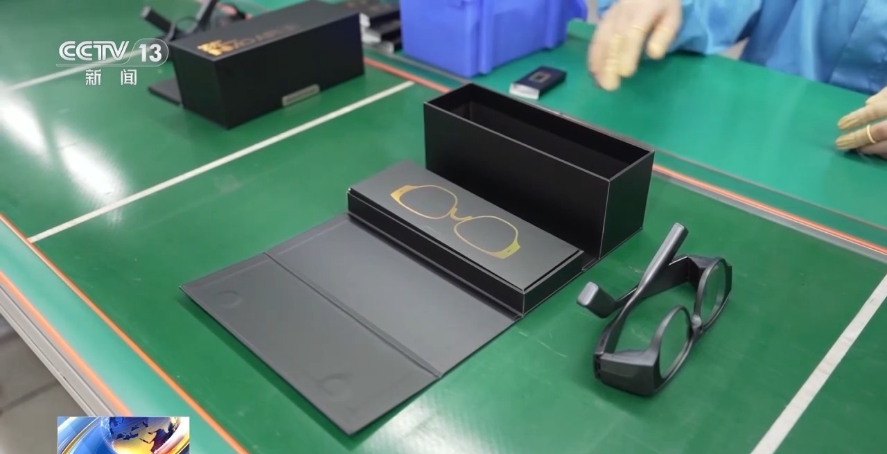 销售火热直接带动了智能眼镜生产提速。在广东中山的一家智能眼镜生产厂,两条生产线上,工人们抓紧抢进度,一天就能生产近千台全彩光波导智能眼镜。