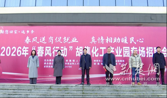 荆楚网(湖北日报网)讯(通讯员 李含嫣 何星)2月12日,钟祥市2026年“春风行动”胡集化工产业园专场招聘活动在胡集文体中心广场火热举办。本次活动以“春风送岗促就业, 真情相助暖民心”为主题,抢抓春节前用工求职“双高峰”,为化工产业发展与重点群体就业搭建精准对接平台。