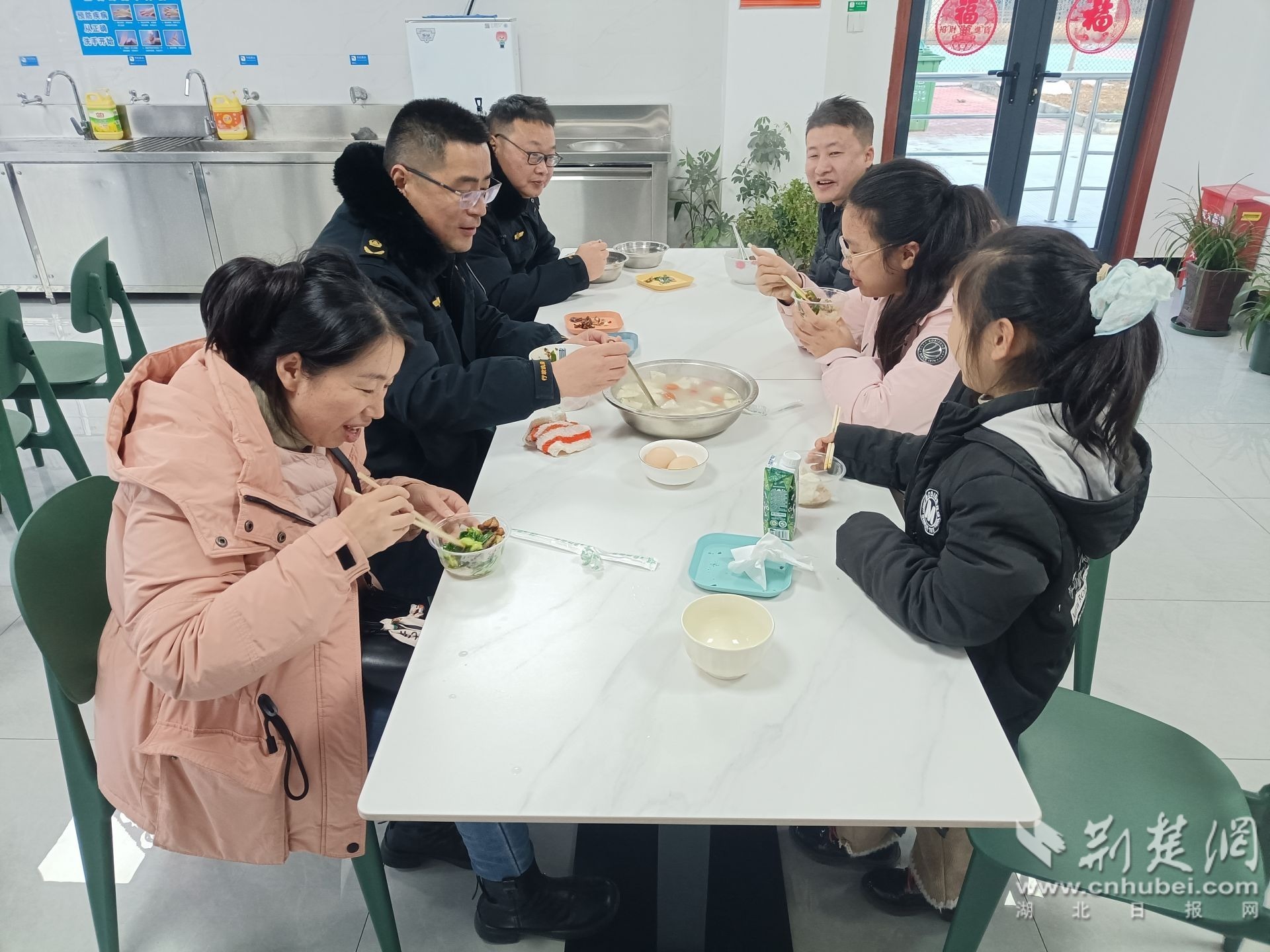 交谈中,执法人员得知,为了赶路这一家四口连午饭都没来得及吃,已连续行驶一千多公里,随行还有两名年幼的儿童。执法人员立即将他们接到大队食堂,为他们准备了热气腾腾的晚餐。一碗热饭、一份热菜,驱散了一家人旅途的疲惫,更安抚了他们受惊的情绪,原本紧绷着脸的孩子们,脸上也渐渐露出了久违的笑容。晚餐过后,大队又贴心安排车辆,将方女士一家四口安全送往提前预订的酒店。