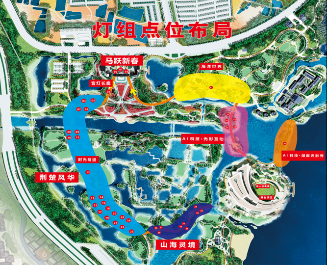本次灯会共规划四大主题场景,30余组主题花灯。通过匠心工艺与现代技术的碰撞,打造兼具观赏性、互动性与文化性的光影盛宴。