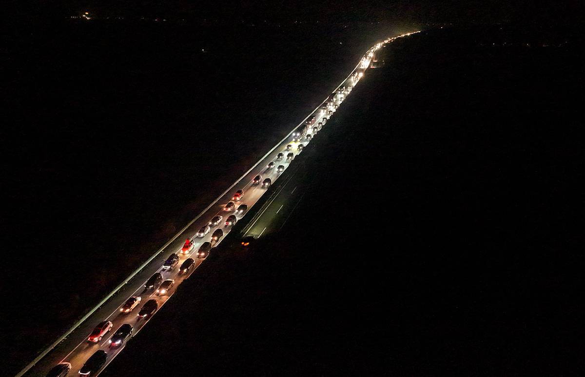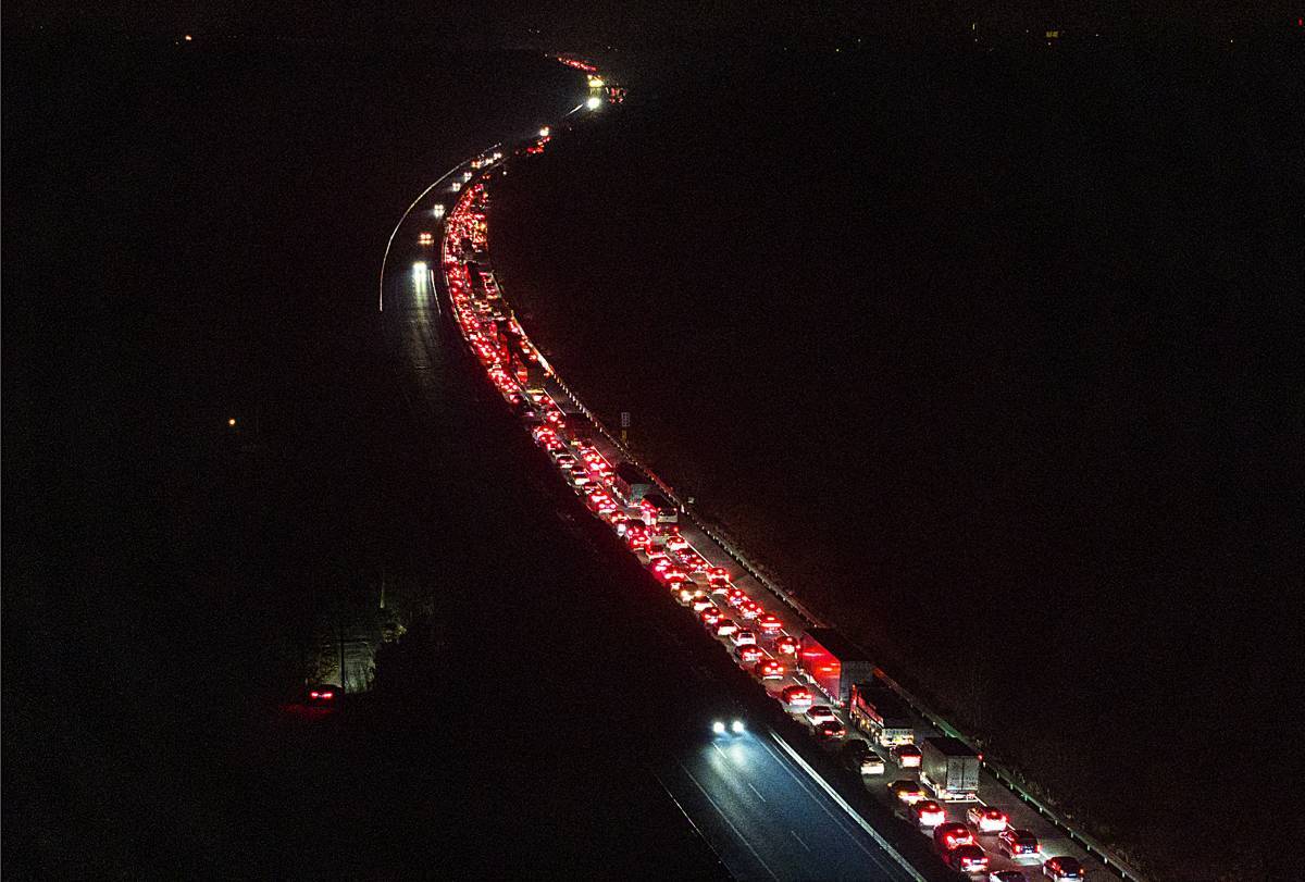 2月13日凌晨,沪蓉高速湖北钟祥市路段呈现出一条望不到头的“火龙”。