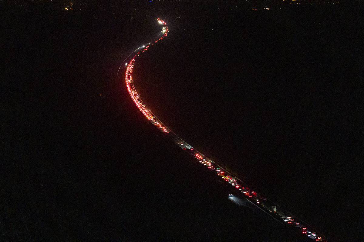 2月13日凌晨,沪蓉高速湖北钟祥市路段呈现出一条望不到头的“火龙”,这“火龙”向宜昌、恩施、成都、重庆、四川等方向延伸,这些“龟行”的车辆中多数是外省的牌照。