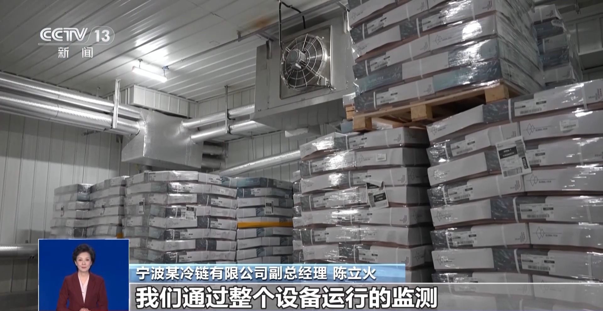 宁波某冷链有限公司副总经理 陈立火:从进口商品上来讲,我们从原来存储的十几种单品,到现在已经跃升到几十种单品,包括新西兰的青口贝、智利的帝王蟹。我们通过整个设备运行的监测、温度的实时监测,保障年货的品质。