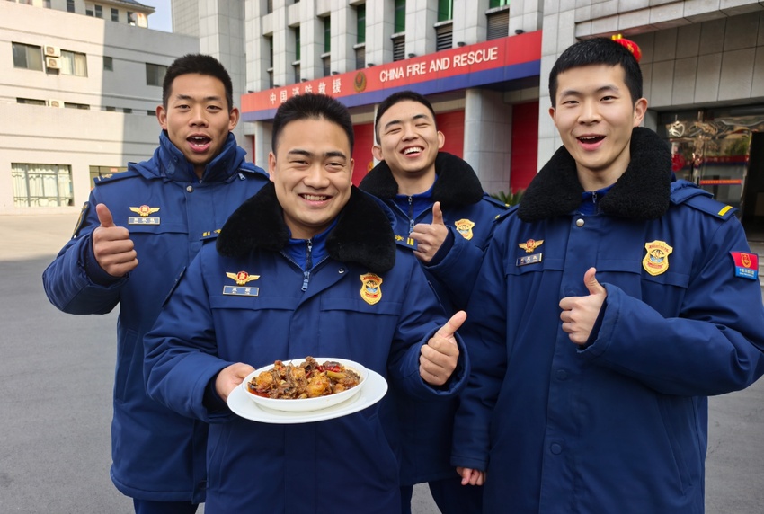 母亲不知,聂颖说“不回了”的当天,队友们悄悄建了“给聂颖家的年味”微信群,商议着给他一个惊喜。十几个消防员挤在食堂后厨,对着教学视频反复琢磨,还特意拨通聂妈妈的电话,一字一句记下家乡菜做法。有人把干辣椒煮过了头,捞出锅时已烂成红泥;有人被油锅呛得泪水直流,却始终没有停下,那盆辣子鸡在一次次尝试中,渐渐有了㵲阳河边的地道风味。