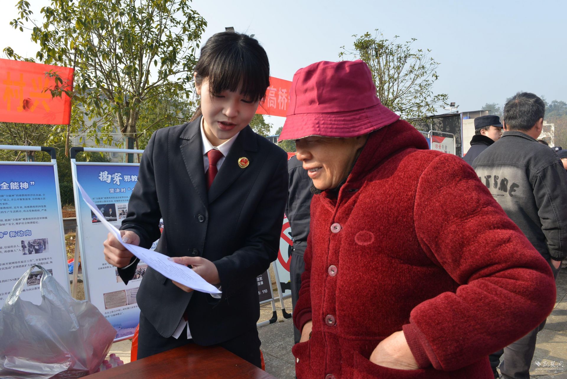 “大爷,您看看这个,扫黑除恶不光是打击坏人,还能保护咱们老百姓的切身利益,遇到欺负人的情况,一定要及时报警求助。”“大姐,这是未成年人保护的宣传页,家里有小孩的可得多留意,教孩子学会保护自己,远离危险。”干警们围绕群众关心的扫黑除恶、未成年人保护等重点主题,结合乡村常见案例,耐心解答大家的疑问,提醒群众提高法治意识和自我防范能力,既讲违法的后果,也教维权的方法,让法治知识入脑入心。