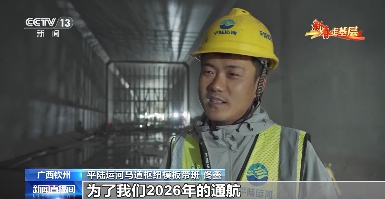 平陆运河马道枢纽模板带班 佟鑫:我们这些建设者们都是一个目标,为了我们2026年的通航。正常通航了我要回来再看一下,看看我们曾经汗水挥洒的地方,将来有多辉煌。
