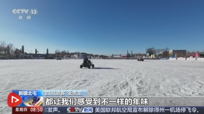 春节临近,新疆北屯市依托丰富的冰雪资源,在玉带河冰封的河面上打造了多种赛事和活动,人们在欢声笑语中感受速度与激情,在运动中喜迎新春。