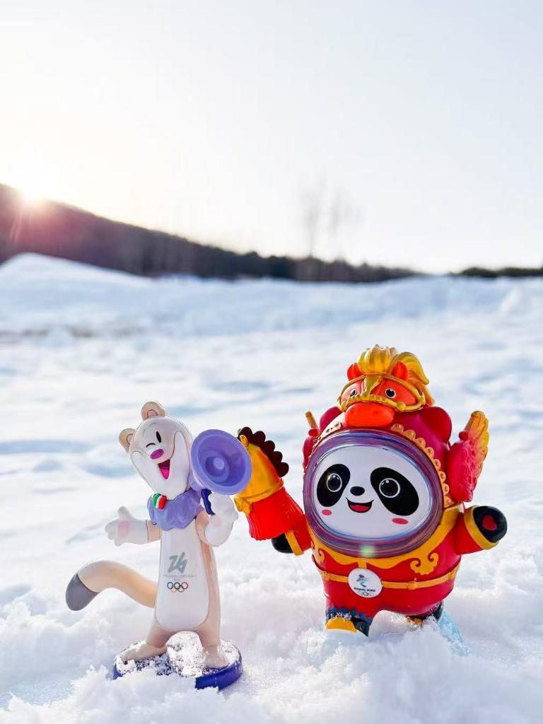 “马墩墩”与米兰冬奥会吉祥物蒂娜“同框”。新华社记者 那宇奇 摄
