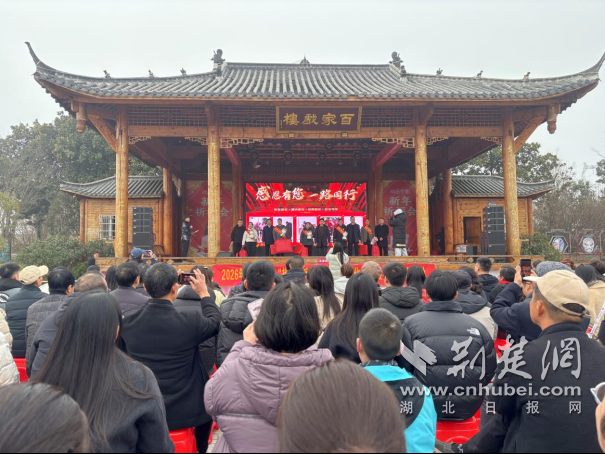 荆楚网(湖北日报网)讯(通讯员 肖朕天 李辰燃)2月14日,京山市“企暖乡野·助农敬老”暨白谷烟树新春年俗活动启动仪式在景区百家戏楼举行。全市助农企业代表、敬老爱亲代表及家属、白谷洞村村民及市民朋友等200余人参加启动仪式。
