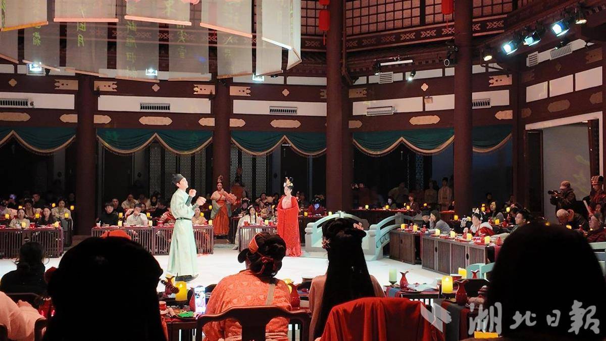 湖北日报讯(记者冯袁玥、杨千帆、通讯员汪鹏、唐云翔)在龟山之巅,与“周瑜”“貂蝉”等三国人物同席,一边品尝荆楚佳肴,一边观看鱼灯舞、飞天舞等演艺大秀——临近农历新年,这顿“能吃能看能玩”的别样古风年夜饭,正吸引不少外地游客慕名打卡。