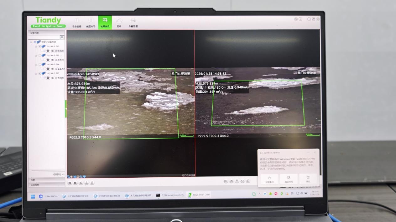 视频影像测流系统拍摄画面在指挥中心电脑上实时显示数据(记者江晓晨 摄)