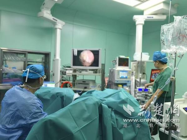 专家为百岁老人实施经尿道微创膀胱肿瘤电切术。通讯员供图