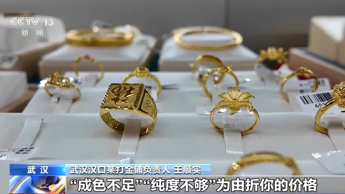 在湖北汉口的一家打金铺,市民胡女士正拿着以前购买的黄金,来到店里进行以旧换新。