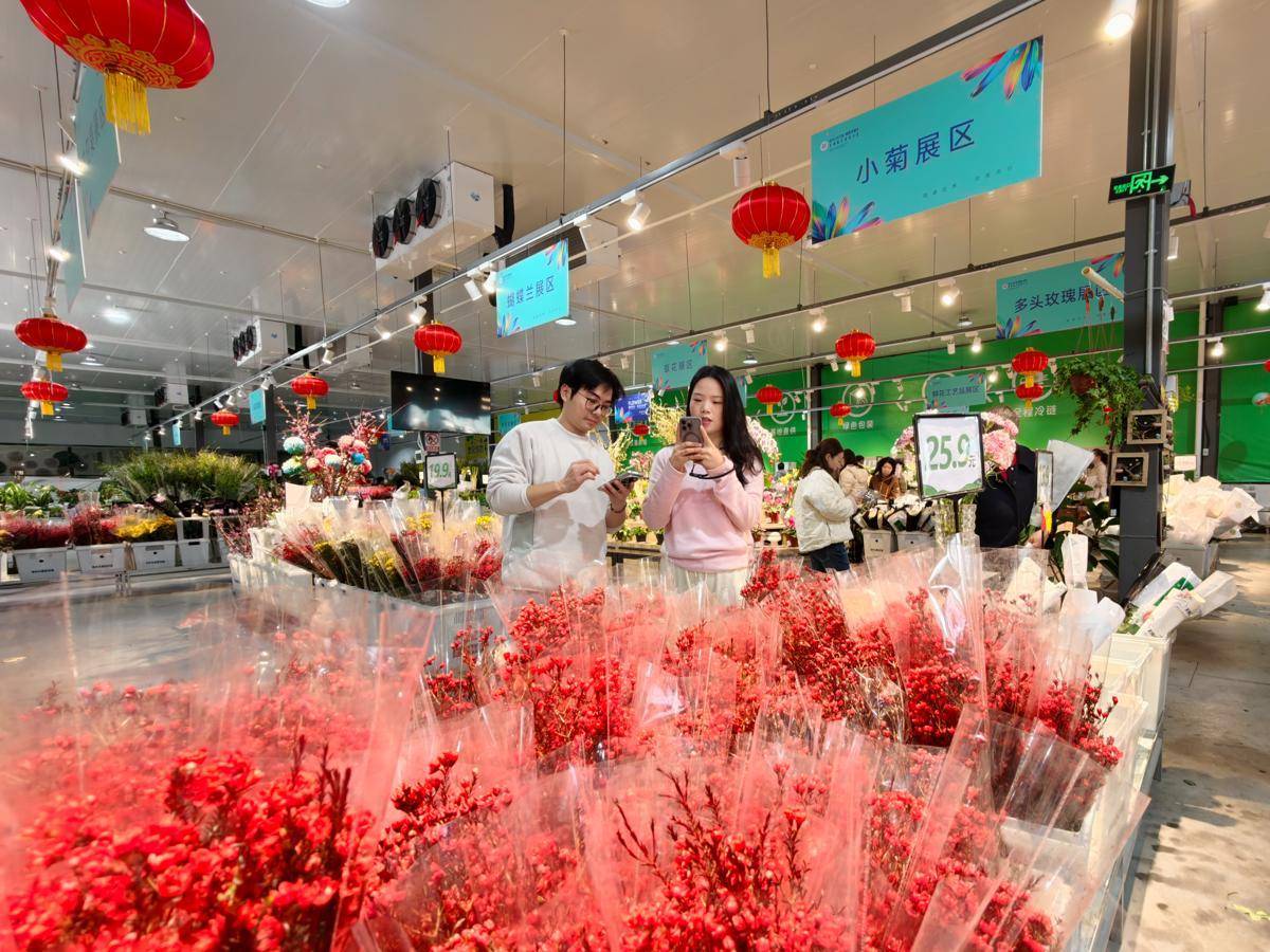 春节临近,从2月10日起年宵花迎来高峰,武汉斗南鲜花市场人潮涌动。一家店铺老板向记者介绍,目前百合、康乃馨、玫瑰是最受欢迎的花品,“百合寓意百年好合,很受大家青睐,玫瑰则因恰逢情人节,销量更是一路陡增。”(湖北日报全媒记者黄洁如、张竞恒)