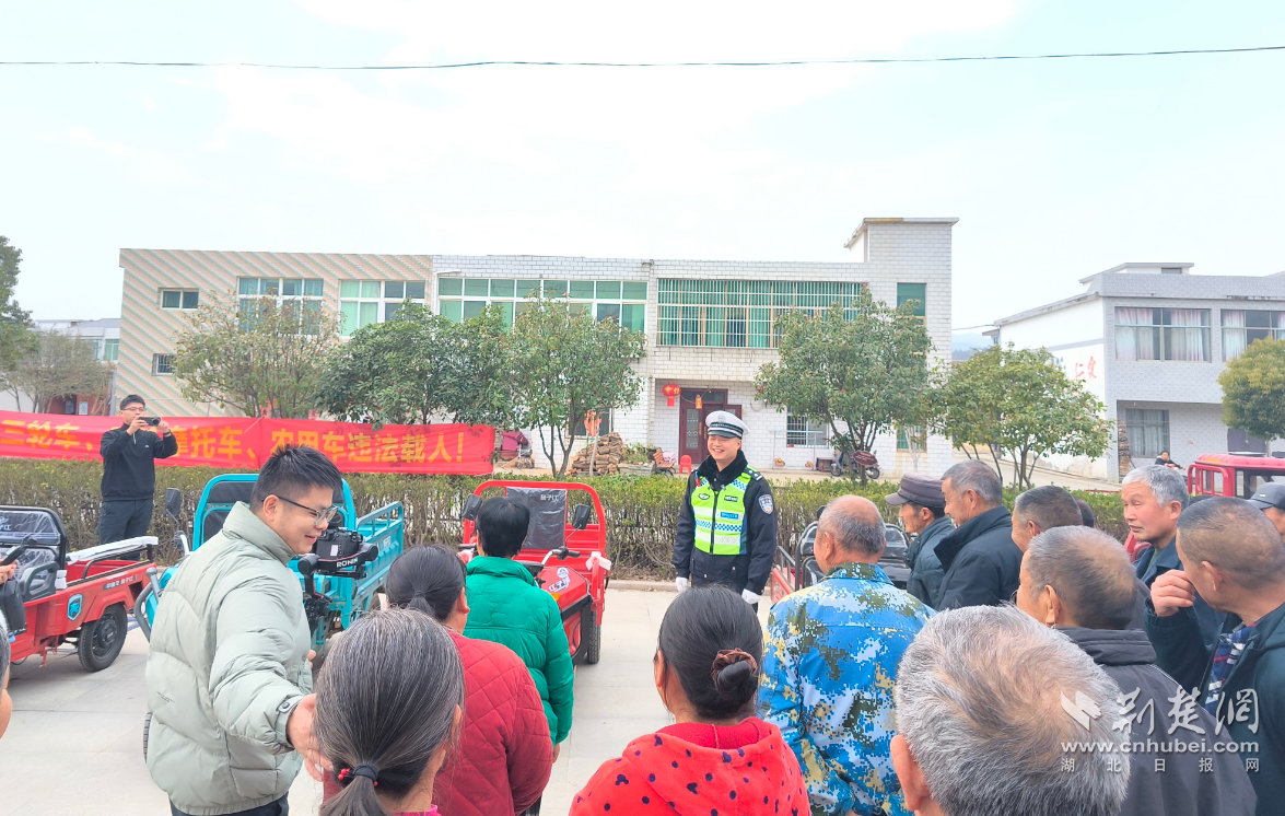 荆楚网(湖北日报网)讯(通讯员曾承兴、王娑娜)2月5日,湖北省公安厅交通管理局联合新华网、湖北广播电视台、孝感市大悟县公安局交通管理大队,走进大悟县大新镇八口塘村,开展“美丽乡村行”春运交通安全主题宣传活动,用村民听得懂、看得见、用得上的方式,将平安送到家门口。