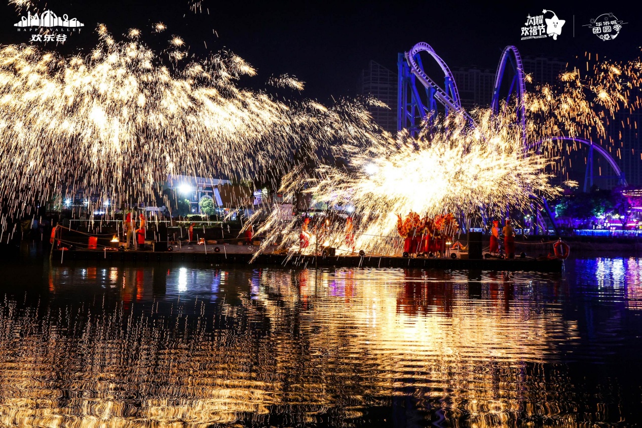 全运会开幕式上的“飞天鳌鱼”已经游进欢乐谷里为大家送祥瑞。现场游客不仅能一睹鳌鱼震撼飞天的威武之姿,还可以零距离合影打卡,接到“独占鳌头,步步高升”的美好祝福。正月初一起,非遗绝技“打铁花”将划破夜空,编织出一幅壮丽磅礴、吉祥喜庆的东方画卷,照亮新年愿景。