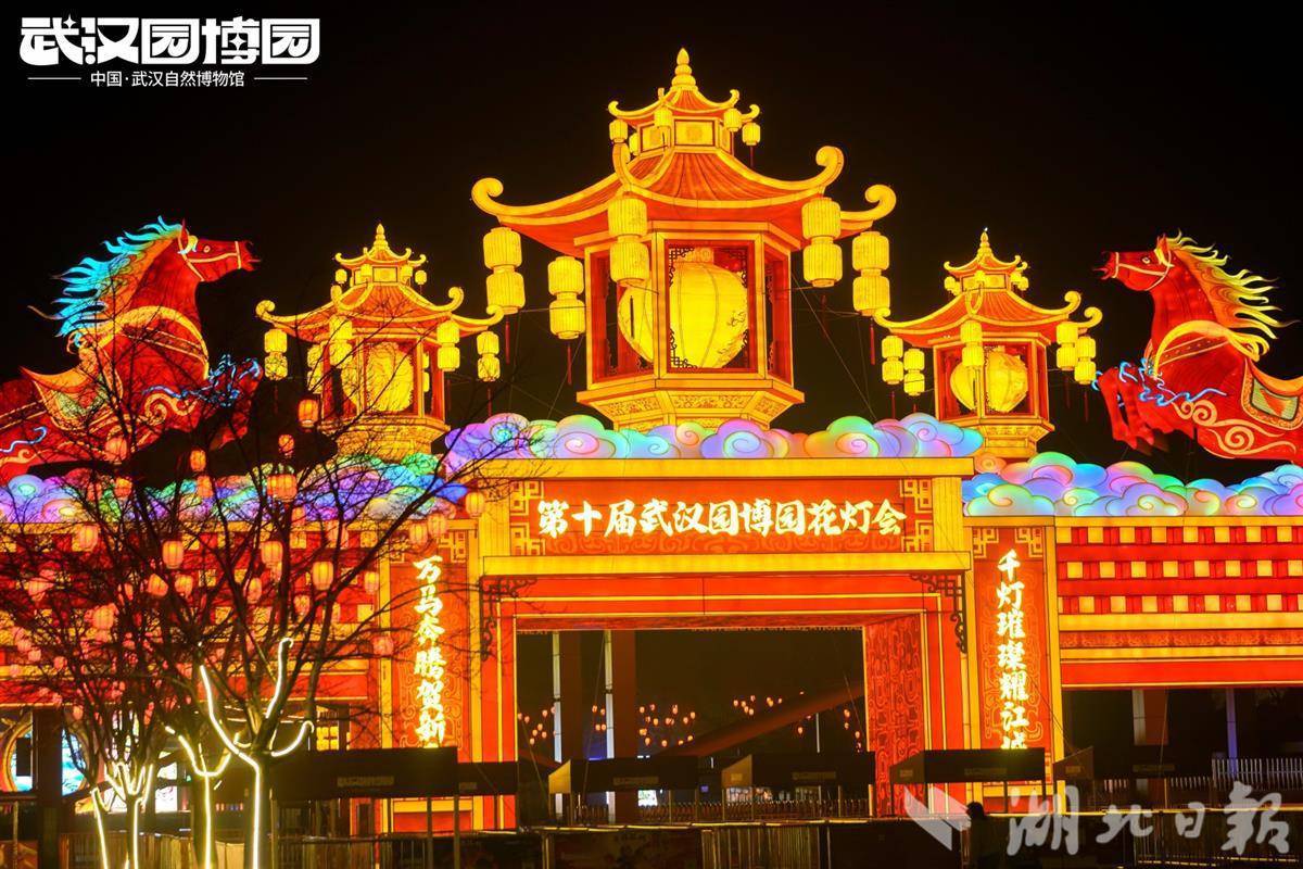 2月11日,以“万马奔腾贺新春·千灯璀璨耀江城”为主题的2026年第十届武汉园博园花灯会正式拉开帷幕。园林间千盏花灯流光溢彩,映亮江城夜空;高空中千架无人机列队翩飞,送上新春祝福。过年期间,花车巡游、火舞秀等特色节目轮番上演,精彩纷呈的视听盛宴吸引了大批市民游客驻足观赏,共赴这场新春民俗盛会。