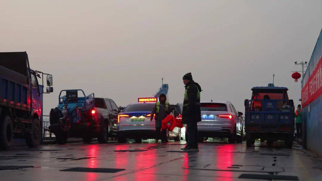 南方小年前后,返乡潮悄然涌动。清晨6点30分,朝阳未起,在枝江客流量最大的宝筏寺汽渡口,江面已被等候渡船的车辆与早班船驾驶舱的灯光点亮。