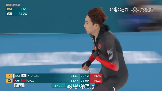 当地时间2月14日下午,2026年米兰冬奥会速度滑冰男子500米比赛在米兰速滑馆举行。上届冠军、中国队选手高亭宇以34秒47的成绩最终获得第七名。这是高亭宇第三次参加冬奥会,4年前的北京冬奥会上,他在该项目中实现中国男子速滑冬奥会金牌“零的突破”。