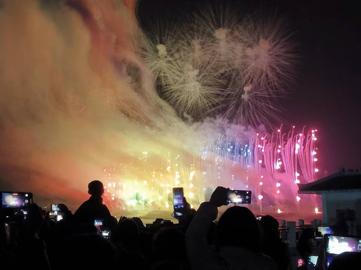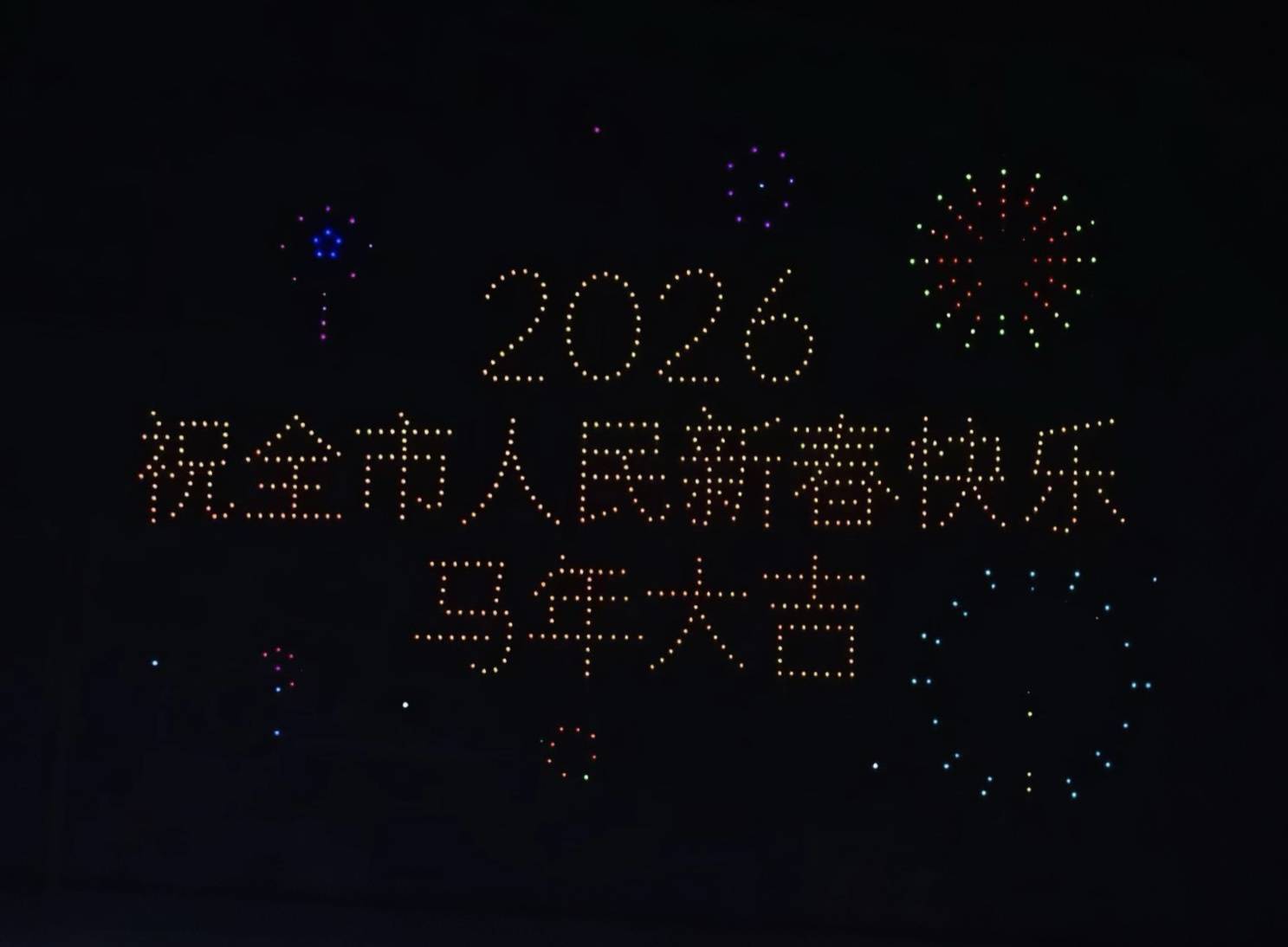 2月14日,汉川市沿江大道举行“点亮汉江·风和日丽”2026年汉川市迎新春无人机烟花秀表演活动,现场人潮涌动,年味十足。活动现场,1000架无人机腾空而起,绘就水乡特色画面;随后三十分钟烟花绽放,轮番照亮汉江夜空。(湖北日报全媒记者喻煜 通讯员熊少海)