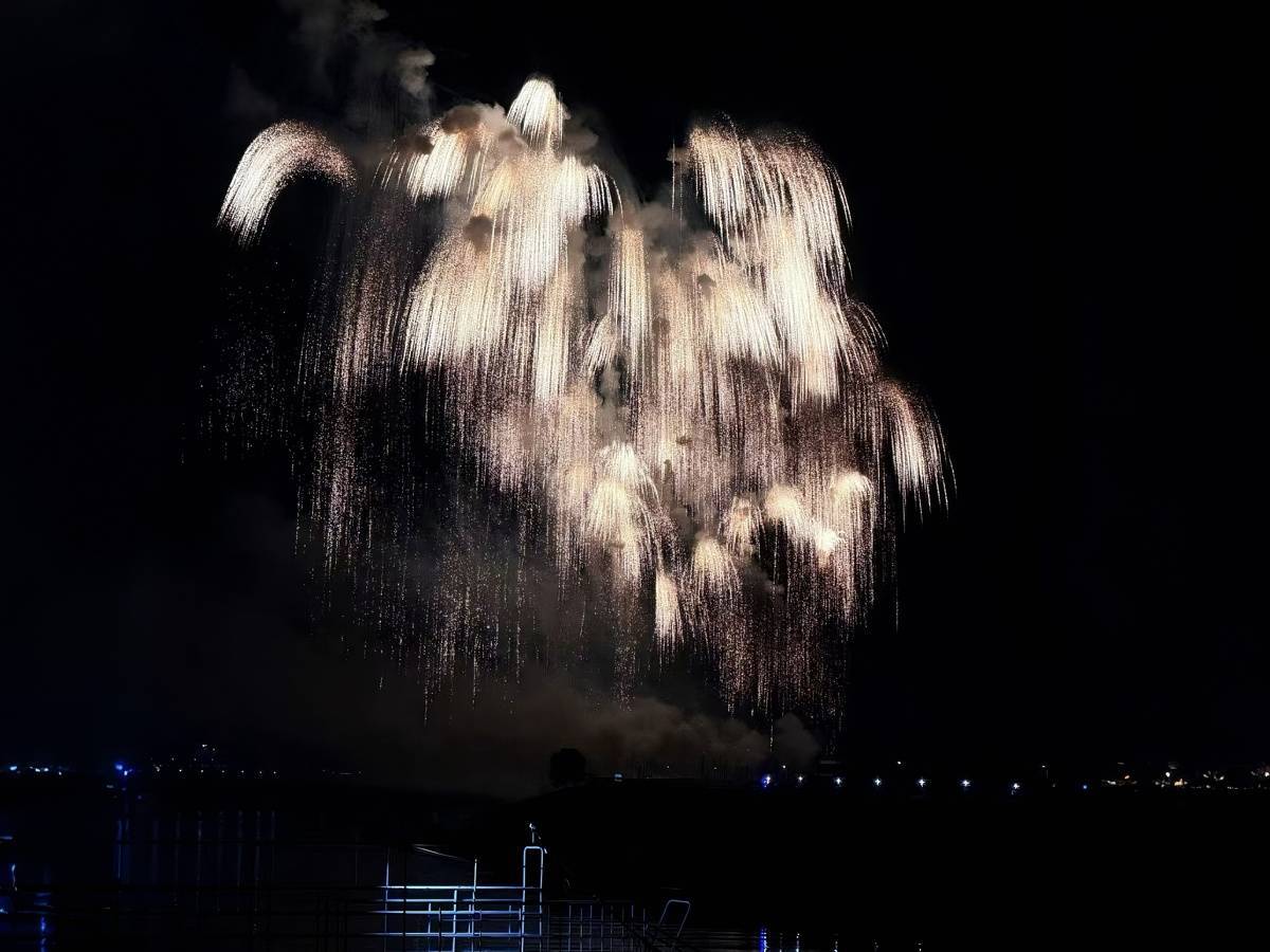 烟花点亮汉江夜空。(湖北日报全媒记者喻煜 摄)