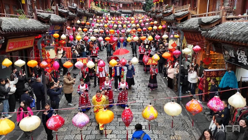 特色民俗展演让石板街热闹欢腾(央广网发 都匀市融媒体中心供图)