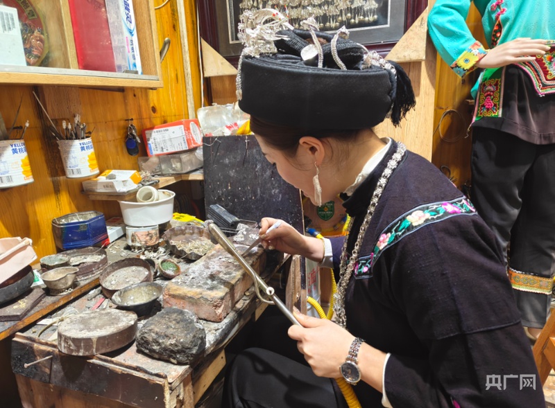 “焊接是银饰的‘筋骨’,衔接得越精密,银饰才越耐用、越精致,尤其是过年的银饰,更要做到精益求精,不辜负大家的期待。”蒙梅香一边轻轻擦拭焊好的银饰,一边和身旁围观的游客说道,语气里满是坚守与严谨。